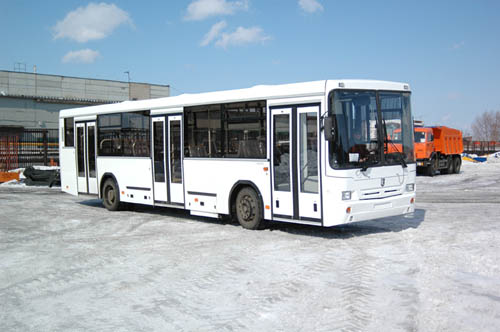Данной модели нет в продаже.Автобус городского типа "АВТОБУС НЕФАЗ-5299-10-32" ![]() Автобус I класса НЕФАЗ-5299-10-32 предназначен для перевозки пассажиров по междугородным маршрутам. В автобусе имеются сиденья, а также участки прохода, предназначенные для стоящих пассажиров. Кузов - каркасный, цельнометаллический, двухдверный, вагонного типа с термоизоляцией. Расположение двигателя - заднее. Вентиляция - комбинированная, через форточки и люки крыши. ![]() Система отопления: - основная от автономного жидкостного подогревателя - аварийная с подключением жидкостной системы охлаждения двигателя к основной системе отопления. Люки крыши - два, аварийно-вентиляционные, которые открываются изнутри и снаружи. Окна: заднее и боковые стекла - закаленные, "сталинит", ветровое - "триплекс". Двери открываются внутрь. Управление дверьми - электропневматическое. Радиооборудование - автомагнитола (радиоприемник, переговорное устройство). ![]() ККоличество мест для сидения...23 (24, 25, 30)+1 Пассажировместимость, чел...112 (109, 106, 99) Масса снаряженного автобуса, кг.............10240 Полная масса автобуса, кг........................18000 Распределение полной массы, кг: - передней оси..........................................6500 - задней оси............................................11500 Высота ступеньки над уровнем дороги, мм...360 Высота пола на площ. сред. двери, мм........730 Расстояние от пола до потолка, мм............2190 Ширина прохода в дверях, мм...................1200 Максимальная скорость, км/ч.......................70 Базовое шасси: Модель.........................................КамАЗ- 5297 Колесная формула .....................................4х2 Двигатель: Модель..............................Cummins 6ISBe270B Рабочий объем, см3...................................6700 Номинальная мощность,кВт........................198 Коробка передач.....................ZF 6S 1200ВО